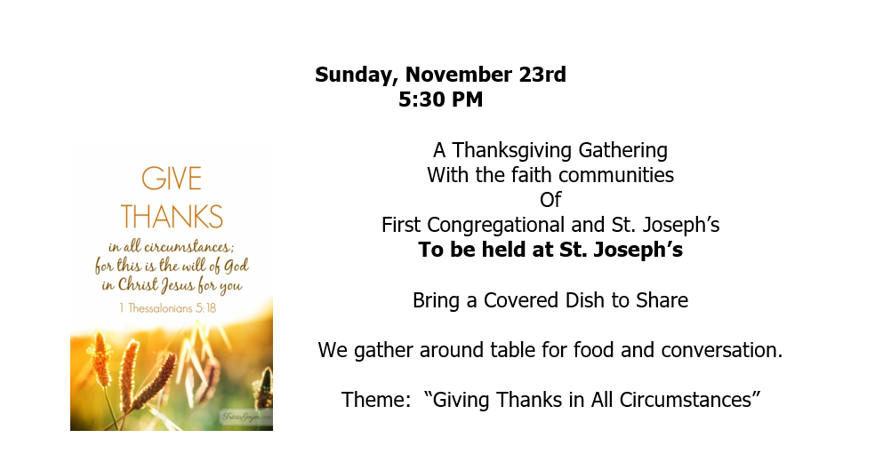 Please join us along with the people of St. Joseph, and First Congregational Churches, and the greater community. All pets and their families are welcome!
